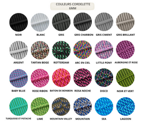 Nos cordelettes sont fabriquées à la main dans notre atelier en Isère à partir d'une corde européenne de Ø6mm de haute qualité certifiée OEKO-TEX (non toxique pour les humains et les animaux).