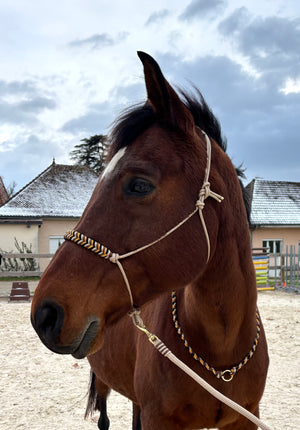 Ce licol possède des bouts de licol doré qui permet une belle finition de corde.